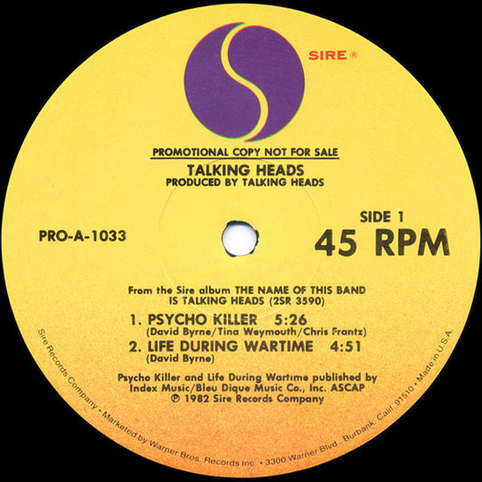 Talking Heads - The Name Of This Band Is Talking Heads (12", Promo, Smplr) (Very Good Plus (VG+))