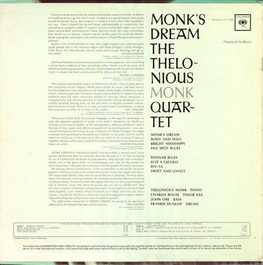 The Thelonious Monk Quartet - Monk's Dream (LP, Album, Mono) (Very Good (VG))