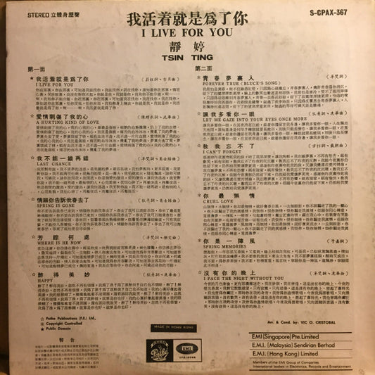 Tsin Ting - I Live For You (LP, Album) (Near Mint (NM or M-))