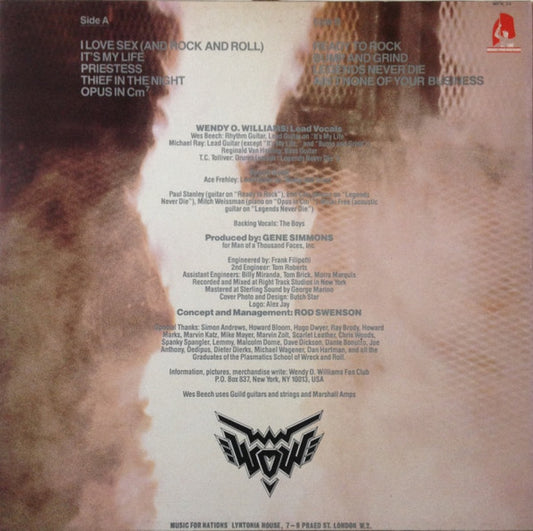 Wendy O. Williams - WOW (LP, Album) (Very Good Plus (VG+))