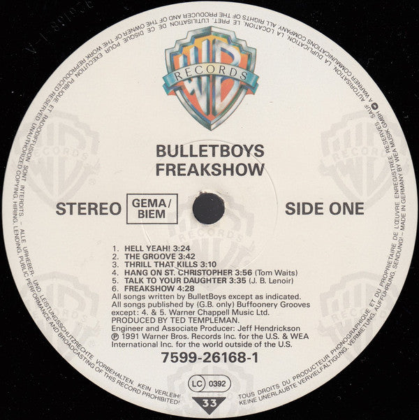 BulletBoys* - Freakshow (LP, Album) (Very Good Plus (VG+))