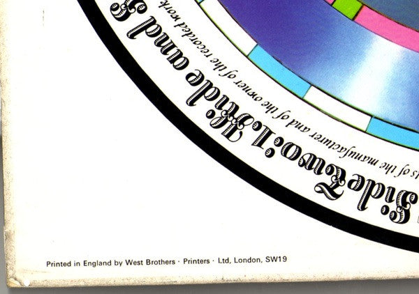 Reissue UK Warner Bros. on green label. 'A'-Side of picture disc (mandala) on Front cover, 'B'-Side on reverse (dynamo*) with only one item of text below, on left: "Printed in England by West Brothers•Printers•Ltd, London, SW19" *The dynamo image on cover is identical to picture disc, except it has 'A'-side matrix. (Timings different to previous WSX issue) Vinyl in white, poly-lined punch-hole wallet. "Made in England 31/0770".