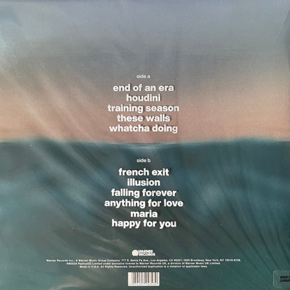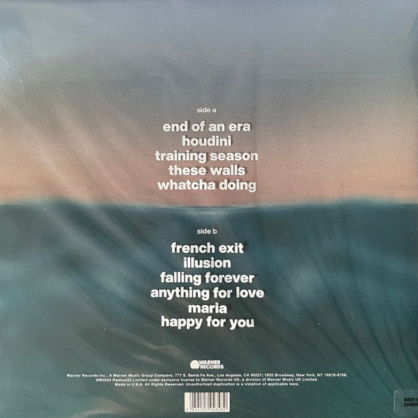 Issued in gatefold jacket, packaged in a PVC sleeve with screen-printed album title on front and and tracklist on back. Includes a collectable 8 page book featuring lyrics and exclusive photos. Advertised as including a hand signed insert, but actually includes a signed CD art card. Promoted as a "split colour 12" vinyl in transparent dark blue & white", however blue half of vinyl is actually translucent. "Made in USA" printed on back of gatefold; "Made in Canada" sticker on back of PVC sleeve. Shares same barcode as [r=30571729, which is the UK equivalent.