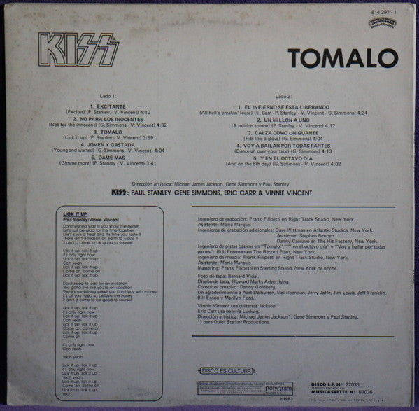 Kiss - Lick It Up = Tomalo (LP, Album, Promo) (Near Mint (NM or M-))