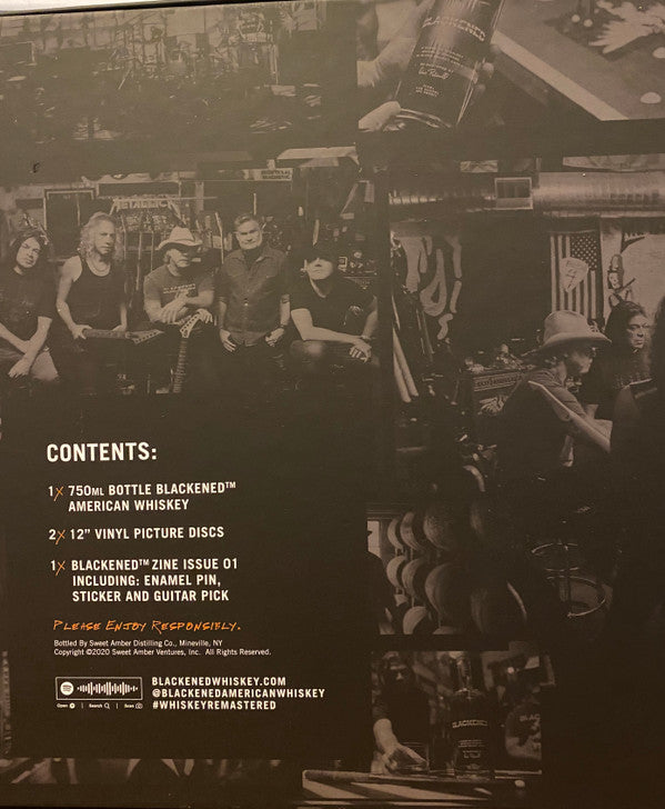Exclusive 2 disc picture disc of the playlist that Whiskey Distiller Rob Dietrich curated for the making of batch 100 of Blackened American Whiskey, the 19th batch, as 81 was the first batch after 1981, the year Metallica formed. The vinyl was sold at retail and online in a deluxe box set commemorating the batch. Also included in the box was 750ml bottle of a Blackened American Whiskey, Blackened zine issue 01, an enamel pin, a die cut sticker, and a guitar pick. Some copies were also distributed via contests on the Metallica and several rock festival websites where you could win the collectible contents of the box set, with the addition of a Blackened canvas tote bag - excluding the whiskey. Original sources: Blackened - 9015 Seattle Creeping Death - 599228 The Unforgiven - 9015 Mexico City Disposable Heroes - 6495 Fade To Black - 6440 Spit Out The Bone - 1083868 Whiplash - 6387 ...And Justice For All - 6571 Nothing Else Matters - 1497150 Leper Messiah - 6495 One - 9015 Seattle Battery - 6495