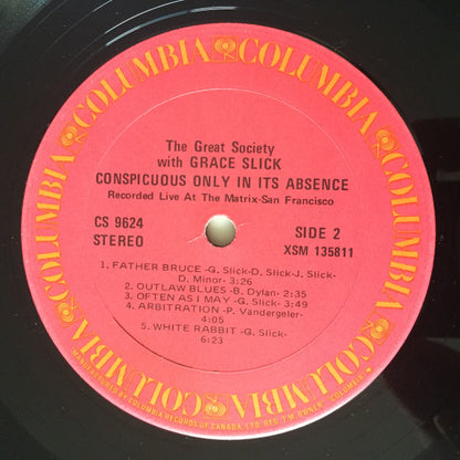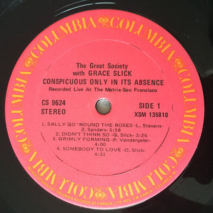 The Great Society With Grace Slick - Conspicuous Only In Its Absence (LP, Album, RP) (Very Good Plus (VG+))